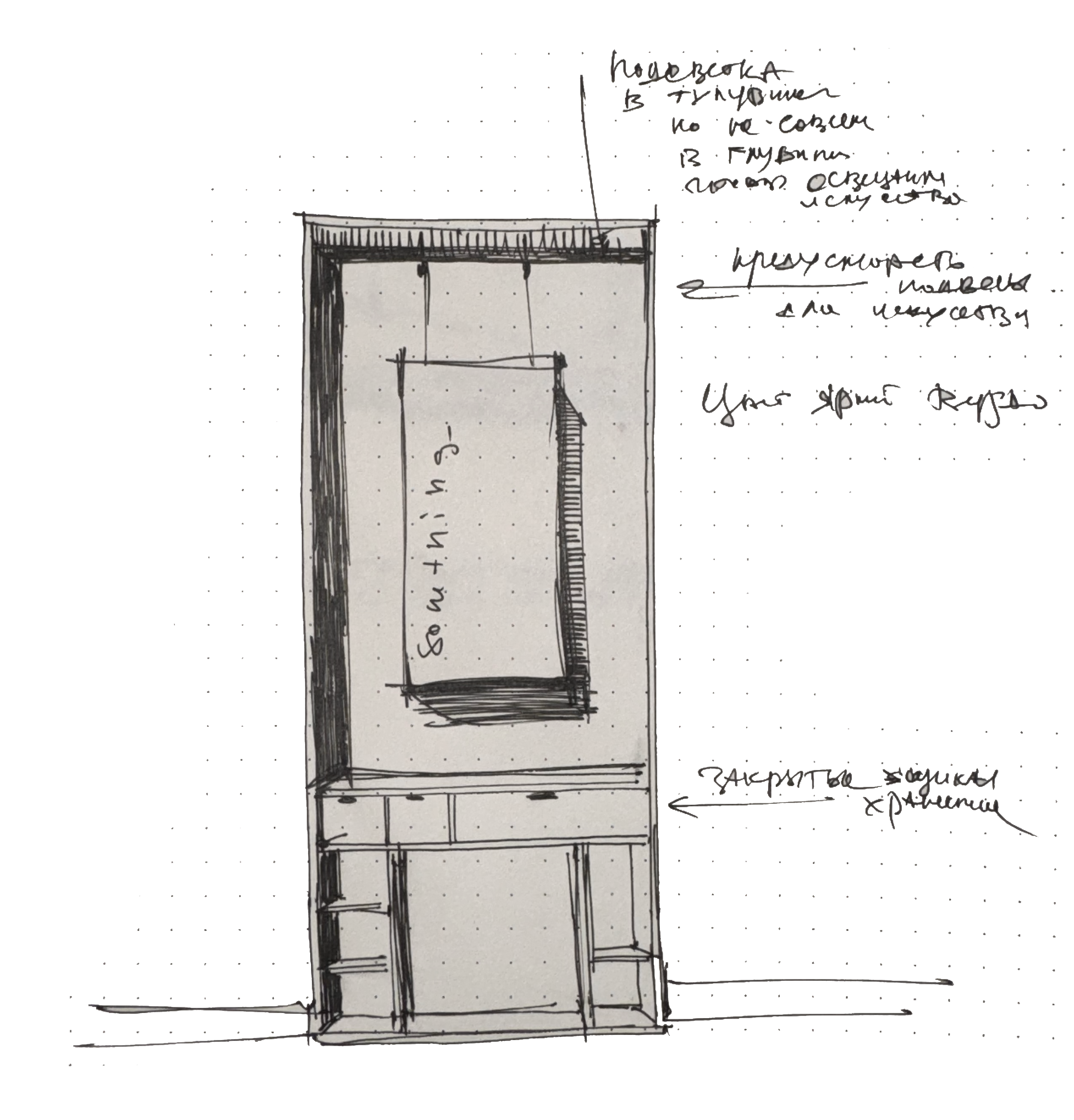 According to the task, we develop several variants of layouts and find a picture of the future space through sketches and the selection of examples. You give your opinion, and if necessary, we change it.